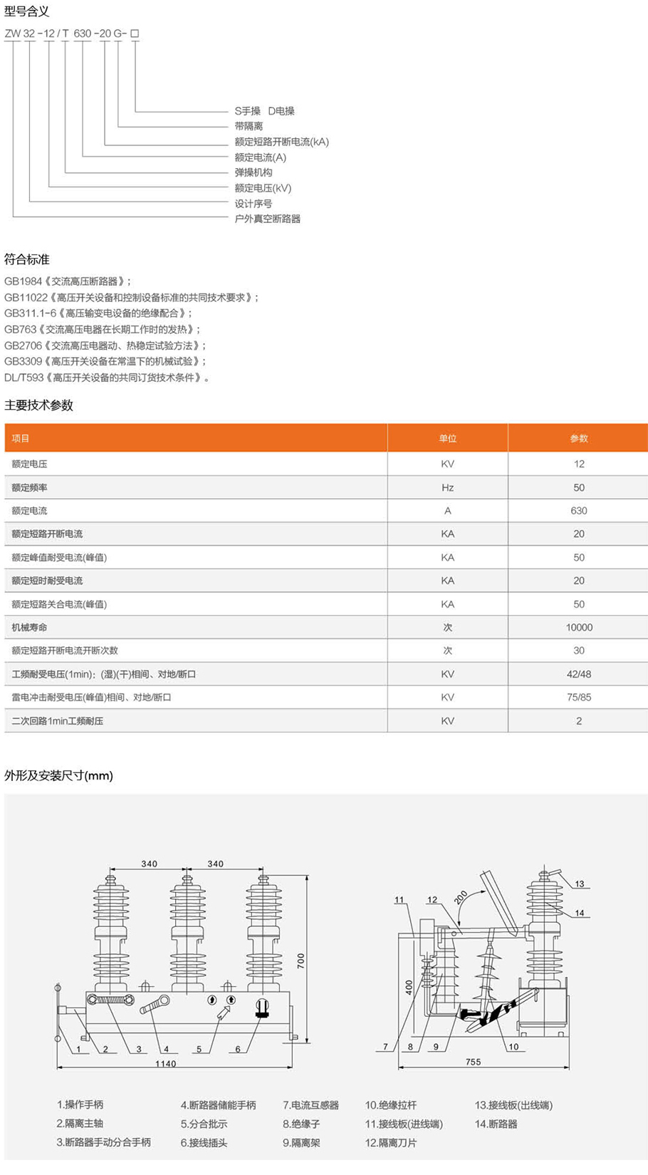 ZW32-12型盧外真空斷路器(以下簡稱斷跑器)為額定電壓12kV,三相交流50Hz的戶外配電設備。主要用于開斷,關合電力系統(tǒng)中的負荷電流、過載電流及短路電流。適用于變電站及工礦企業(yè)配電系統(tǒng)中作保護和控制之用,及農村電網(wǎng)頻繁操作的場所。本斷路器具有體積小、重量輕、防疑露、免維護等特點,能適立較惡劣的氣候條件和污穢環(huán)境。