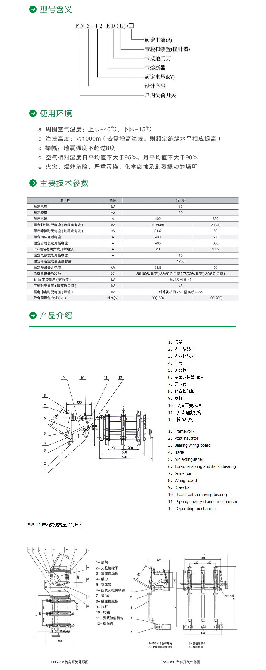 FN5-12系列戶內高壓負荷開關及熔斷器電器(以下簡稱負荷開關)適用于交流50Hz配電網絡中,作為開斷負荷電流及關合短路電流之用。負荷開關可配用CS6-1型手機操作機構、本產品專用的CS手動操作機構或CJ電動操動機構。