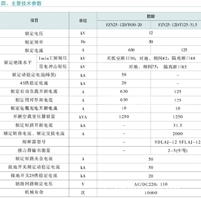 FZN25-12D/630-20型交流高壓負荷開關是三相交流50Hz,額定電壓12kV的戶內裝置,適用于工礦、企業、配電所及變電站等場合,作為電氣設施的保護和控制,用于分合負荷電流、閉環電流、空載變壓器和電纜充電電流。配有手動和電動機操作機構,便于實現電力系統的三遙控要求。