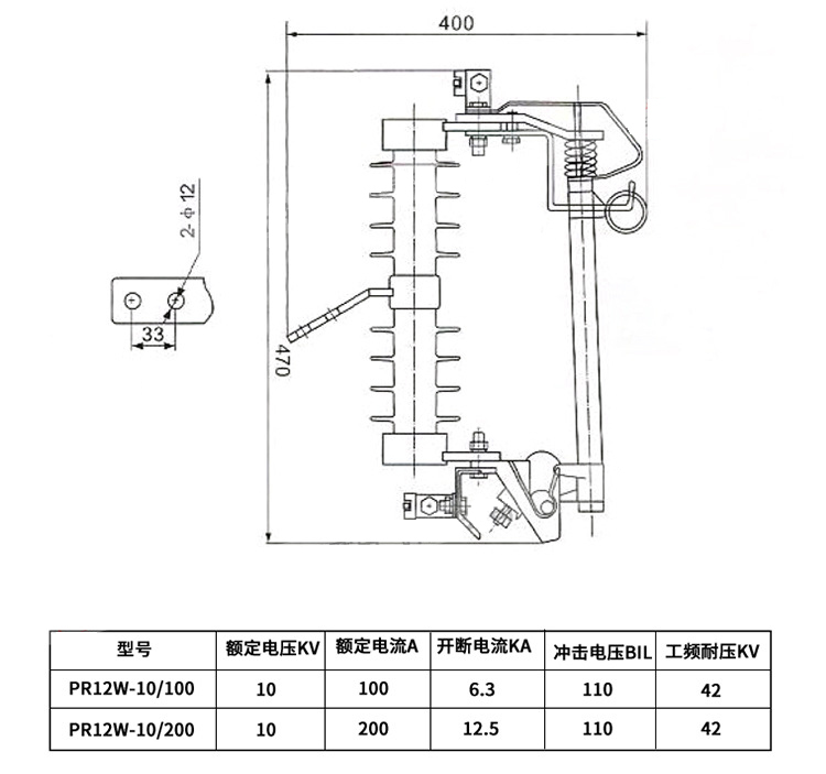 戶外跌落式熔斷器適用于35KV及以下電壓頻率50HZ電力系統中,作輸電線路、電力變壓器過載的短路保護,分合額定負荷電流之用,機械壽命>2000次