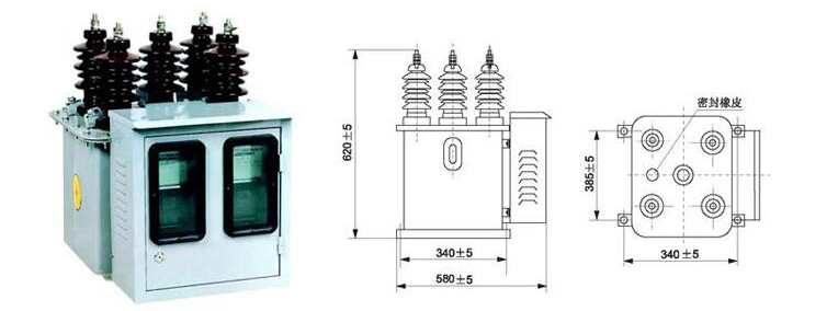 4、通過瓷套內的導電桿將電壓、電流互感器的一次引出供接線用。電壓、電流互感器均固定在托板上,托板通過支撐桿吊裝于箱蓋上,并浸于變壓器油中。高壓引線套管,二次引線套管裝設在箱蓋上,油箱側面裝有放油塞接地螺栓。儀表箱裝在油箱正面,上面裝有觀察窗并備有鉛封孔。