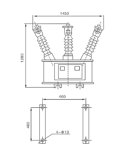 2、組合互感器由兩只單相電壓互感器連體成為(PT)及兩只電流互感器(CT)組成,PT、CT均為電磁式,兩只PT繞組采用V/V聯結成三相測量裝置,兩只CT的一次繞組分別與電網A、C相串連。箱體側面焊有接地螺絲。