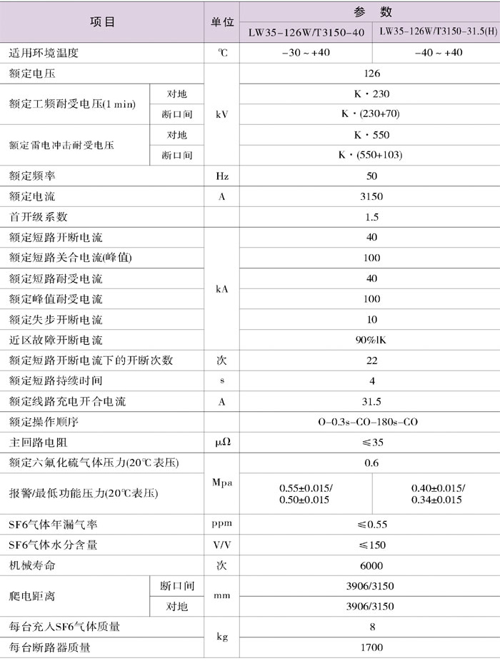 b、海拔不超過1000m(Lw36-126G可用于3000m)